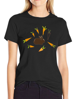 Cute Pink Bunny Graphic Tee - Black Cotton T-Shirt
