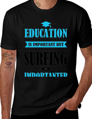 Education vs Surfing Graphic T-Shirt