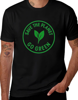Eco-Friendly Black T-Shirt: Save the Planet Go Green Design
