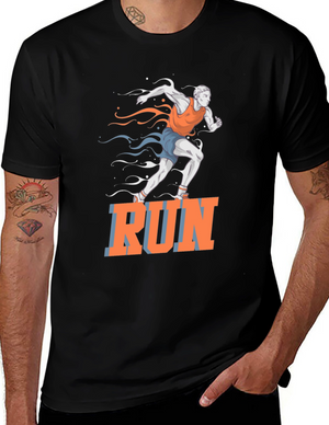 Just Run Black Graphic Tee - Mens Fitness Shirt