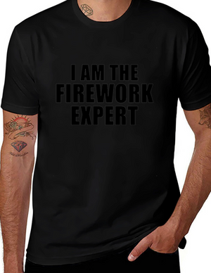 I Am The Firework Expert T-Shirt - Black Crew Neck Tee