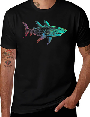 Colorful Shark Graphic Tee - Mens Black T-Shirt