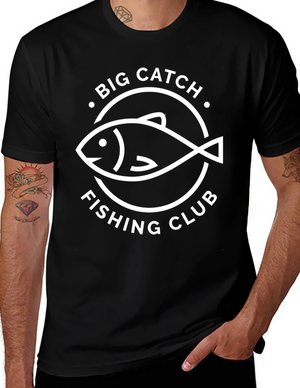Black Fish Outline Graphic Tee - Mens Crew Neck T-Shirt