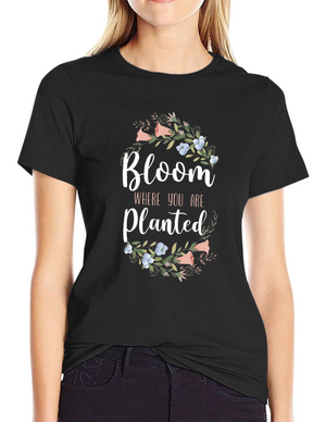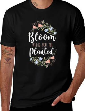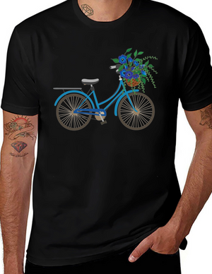 Blue Bicycle & Flowers Black Graphic T-Shirt