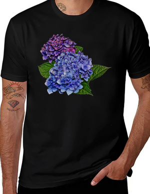 Floral Hydrangea Graphic Print T-Shirt - Casual Comfort