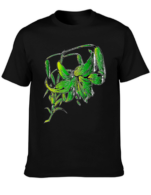 Green Lily Graphic Black T-Shirt