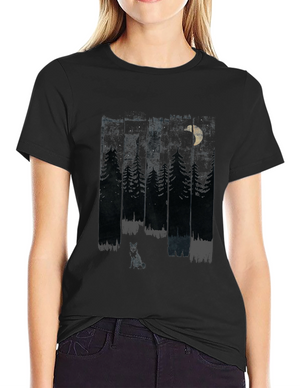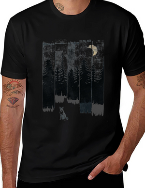 Midnight Forest Tee: Moonlit Pine & Fox Design