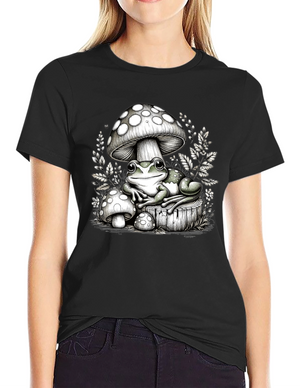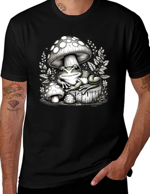 Frog & Mushroom Graphic Tee - Relaxed Fit Black