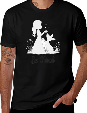 Be Kind Graphic Tee - Girl and Dog Silhouette T-Shirt