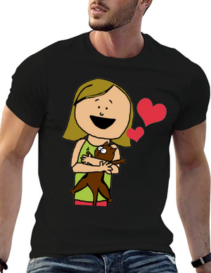 Girl with Cat T-Shirt - Cartoon Graphic Tee