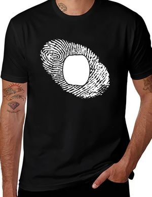 Unique Fingerprint Graphic Tee - Black Cotton Blend