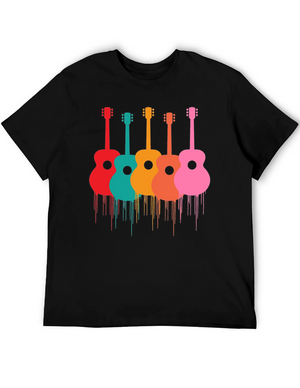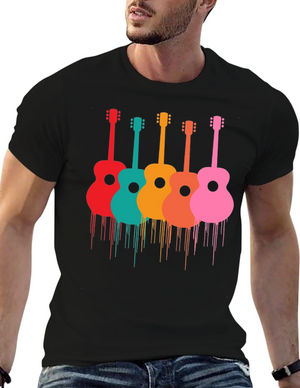 Colorful Guitar Print Black T-Shirt
