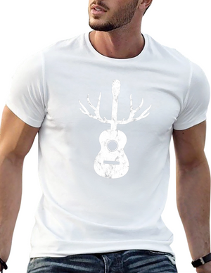 Guitar Antlers Graphic Tee - Black Cotton T-Shirt