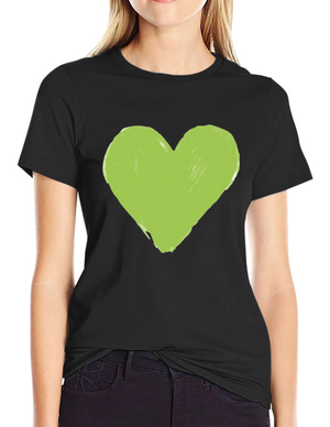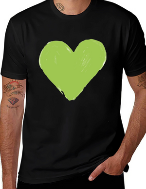 Green Heart Graphic Tee - Casual Black T-Shirt