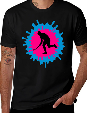 Hockey Player Graphic Tee - Sporty Black T-Shirt