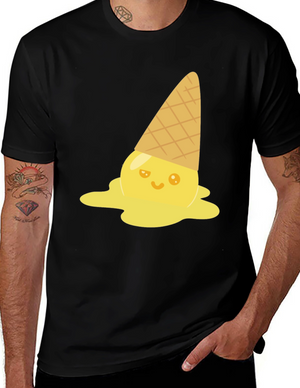 Funny Melting Ice Cream Graphic Tee - Black Cotton T-Shirt