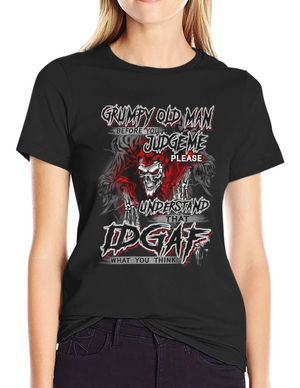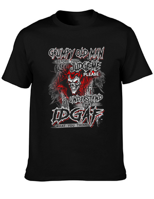 Grumpy Old Man Graphic Tee - IDGAF Skull Design