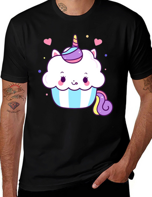 Unicorn Cupcake Graphic Tee - Cute Kawaii Design