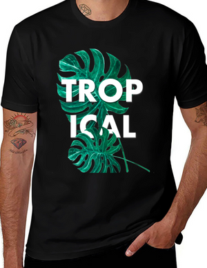 Tropical Leaf Graphic Tee - Black