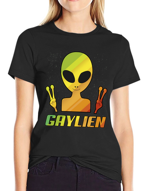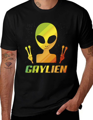 Gaylien T-Shirt - Rainbow Alien Peace Sign