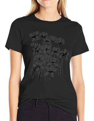 Botanical Woman Line Art Graphic Tee - Modern Black Shirt
