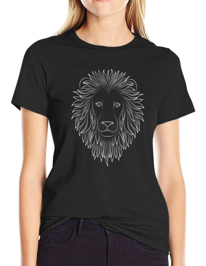 Embedded Nature Lion Graphic Tee - Stylish Black T-Shirt