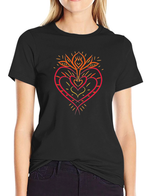 Heart & Lotus Graphic Tee - Stylish Black T-Shirt