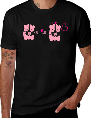 Heart Balloons Graphic Tee - Black Cotton Casual Shirt