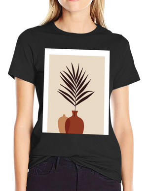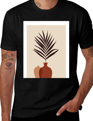 Minimalist Plant Print Black T-Shirt