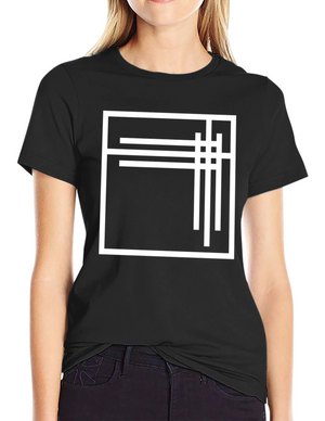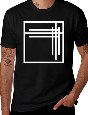 Minimalist Geometric White Line Design Black T-Shirt