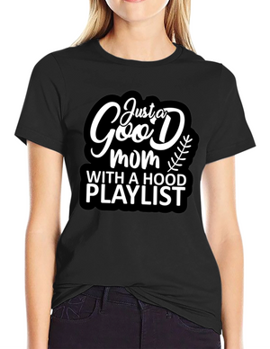 Just A Good Mom With A Hood Playlist Black T-Shirt