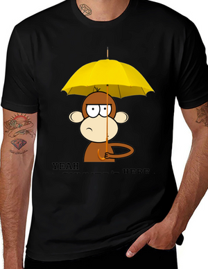 Vibrant Monkey Graphic Tee - Black Cotton T-Shirt