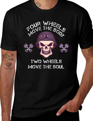 Skull Motorcycle T-Shirt: Wheels Move Body & Soul Graphic Tee