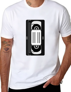 Retro VHS Tape Graphic Tee - Black Cotton T-Shirt