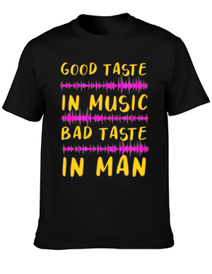 Funny Music Lover Graphic Tee - Good Taste in Music Bad Taste in Man