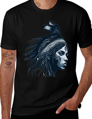 Native Headdress Graphic Tee - Black Cotton T-Shirt