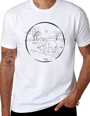 Elephant Outline Graphic Tee - Casual Black T-Shirt