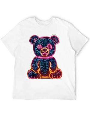 Neon Teddy Bear Graphic Tee - Black Cotton T-Shirt