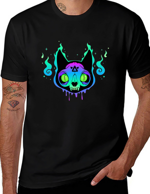 Mystic Cat Graphic Tee - Black Cotton T-Shirt