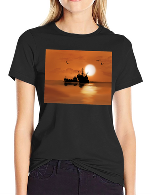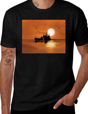 Sunset Fishing Boat T-Shirt