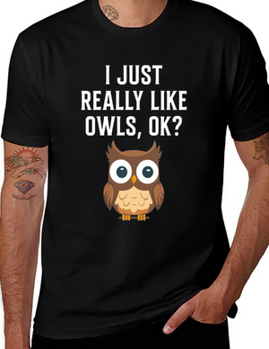 I Love Owls Graphic Tee - Black Cotton T-Shirt