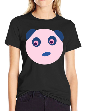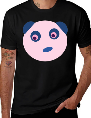 Cute Panda Face Graphic Black T-Shirt