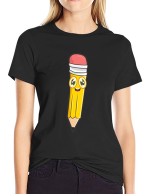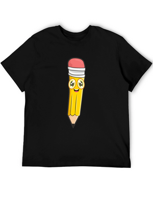 Cartoon Pencil Graphic Tee - Black Short Sleeve Shirt