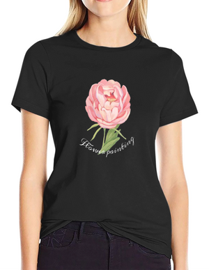 Floral Print Tee - Stylish Black Cotton T-Shirt