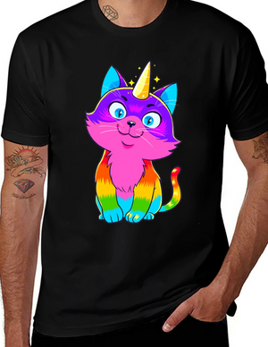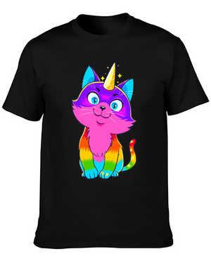 Rainbow Cat Unicorn T-Shirt - Mens Black Tee