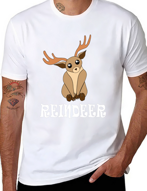 Cute Reindeer Graphic Tee - Black Cotton T-Shirt