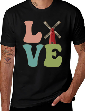 LOVE Windmill Graphic Tee - Soft Cotton Blend Shirt