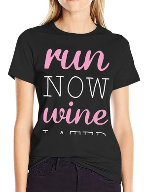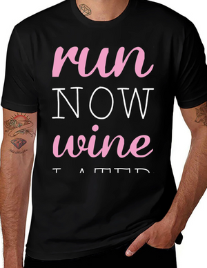 Run Now Wine Later Graphic Tee - Black Cotton T-Shirt