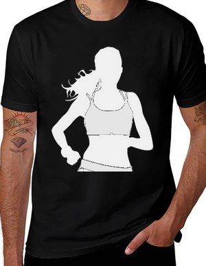 Running Woman Graphic Tee - Black Cotton Casual Shirt