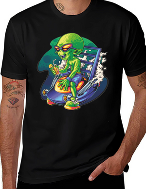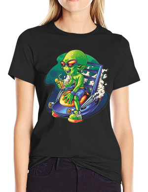 Alien Sipping Juice on Spaceship T-Shirt